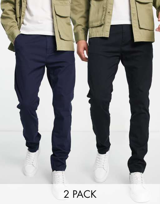 Topman 2 Pack Skinny Chino Trousers In Black And Navy Asos